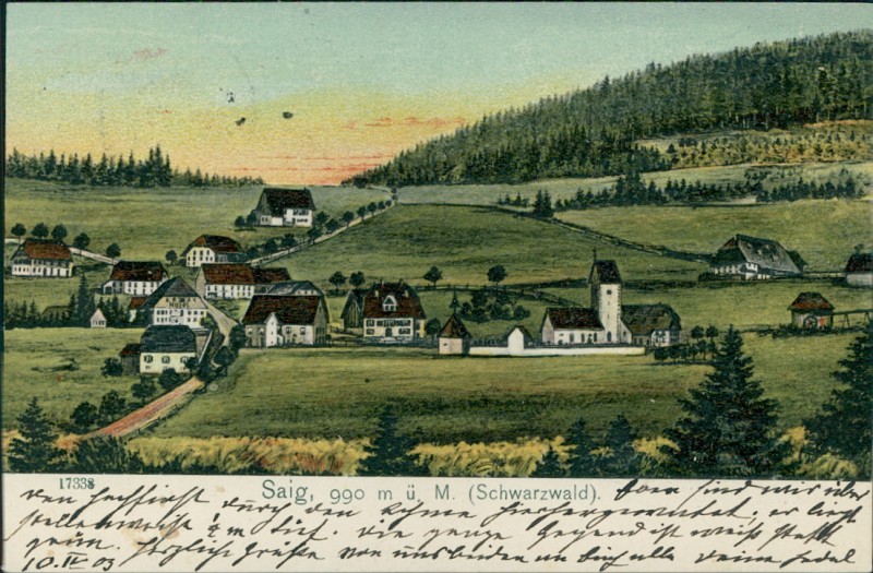 Alte Ansichtskarte aus Lenzkirch-Saig, gelaufen am 11.04.1903 von Lenzkirch nach Freiburg i. B.