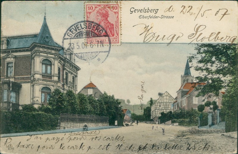 Alte Ansichtskarte aus Gevelsberg, gelaufen am 23.05.1907 von Gevelsberg nach Orlean. Ankunft in Orlean am 25.05.1907.