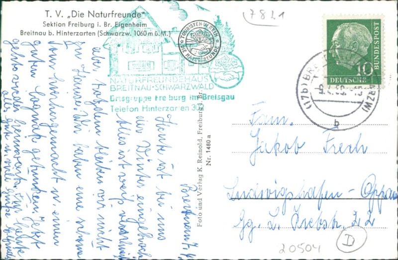 Alte Ansichtskarte aus Breitnau, gelaufen am 09.04.1959.