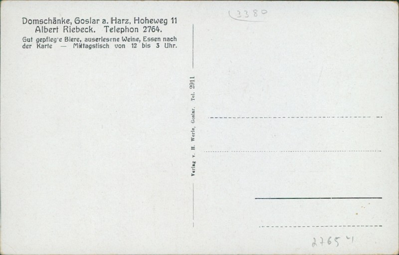 | Verlag | H. Werle, Goslar. Tel. 2911 |