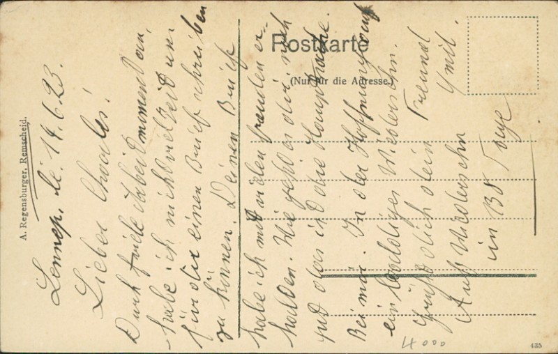 Alte Ansichtskarte aus Remscheid-Lennep, beschrieben am 14.06.1923.