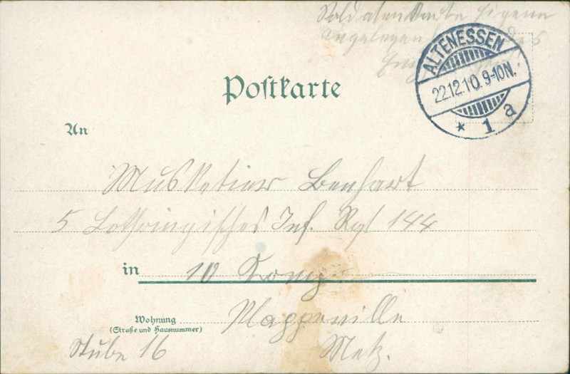 Alte Ansichtskarte aus Essen, gelaufen am 22.12.1910.