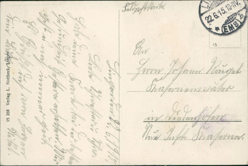 Alte Ansichtskarte aus Lingen (Ems), gelaufen am 22.06.1915.