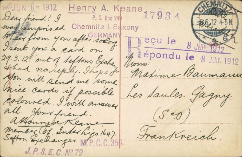 Alte Ansichtskarte aus Chemnitz, gelaufen am 06.06.1912.