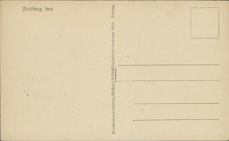 Alte Ansichtskarte aus Freiberg, ungebraucht, gedruckt um 1919.