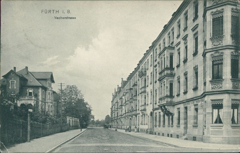 Alte Ansichtskarte aus Fürth, gelaufen am 24.08.1910 von Fürth i. Bayern nach St. Martin.