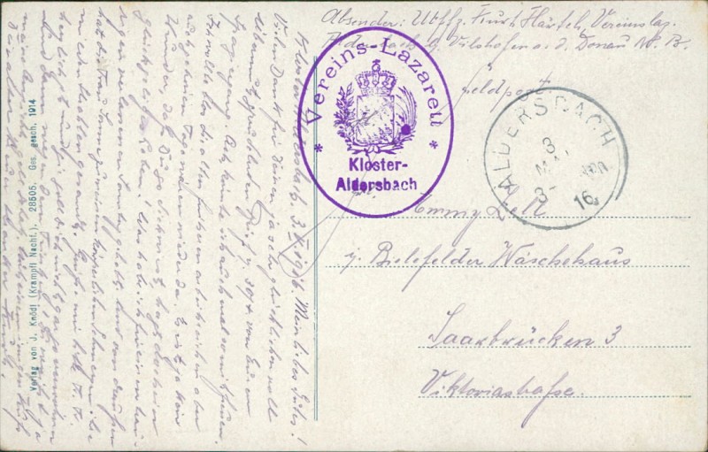 Alte Ansichtskarte aus Aldersbach, gelaufen am 03.05.1916.