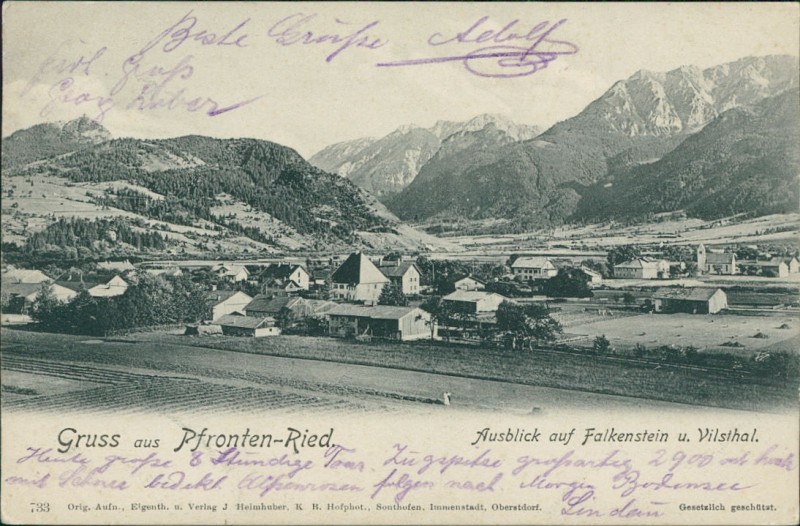 Alte Ansichtskarte aus Pfronten-Ried, gelaufen um 1909.