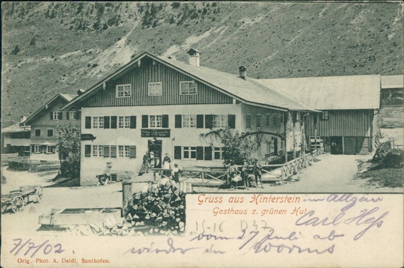 Alte Ansichtskarte aus Bad Hindelang-Hinterstein, gelaufen am 08.07.1902.