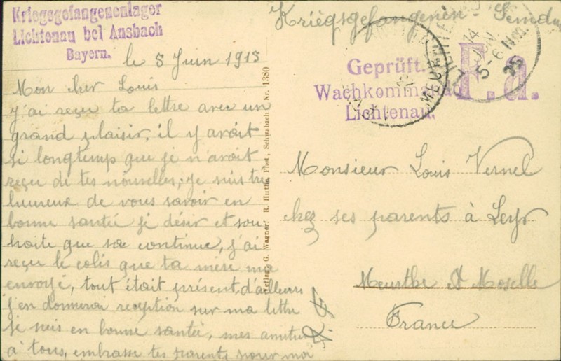 Alte Ansichtskarte aus Lichtenau, gelaufen am 14.06.1915.