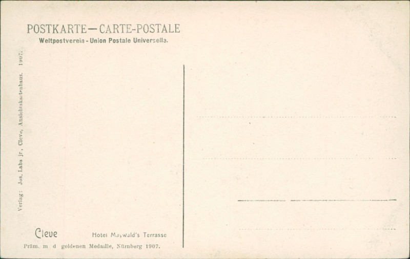 | Verlag | Jos. Labs jr., Cleve, Ansichtskartenhaus. 1907 |