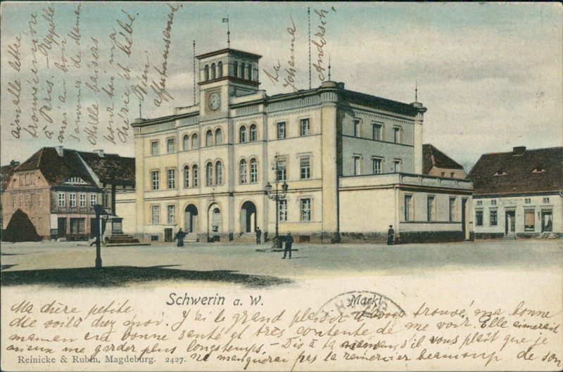 Alte Ansichtskarte aus Schwerin (Warthe) / Skwierzyna, gelaufen am 08.05.1903 von Schwerin (Warthe) nach Paris. Ankunft in Paris am 09.05.1903.