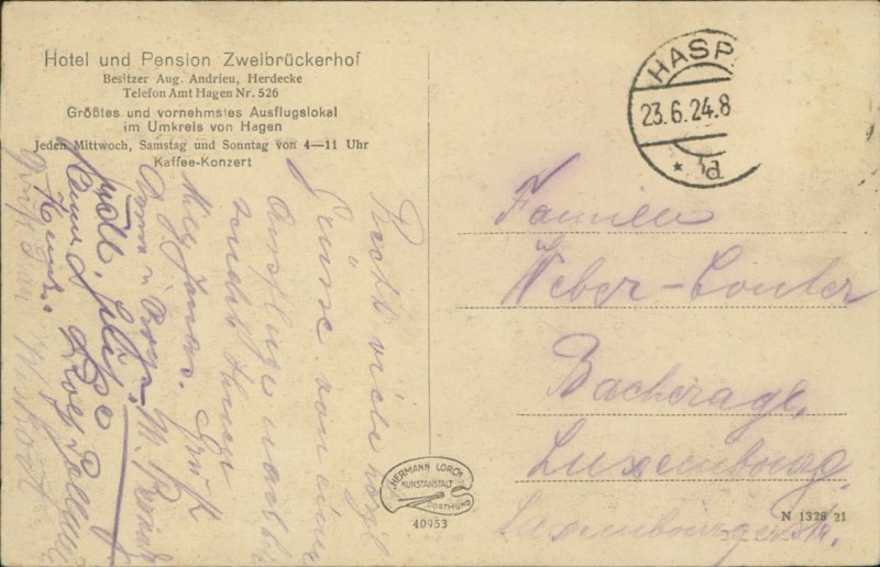 Alte Ansichtskarte aus Herdecke, gelaufen am 23.06.1924.