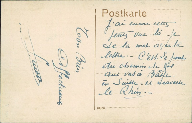 Alte Ansichtskarte aus Huningue / Hüningen, beschrieben um 1910.