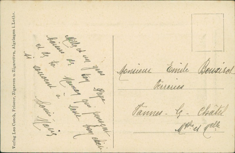 | Verlag | Leo Czech, Friseur, Zigarren u. Zigaretten, Algringen i. Lothr. |