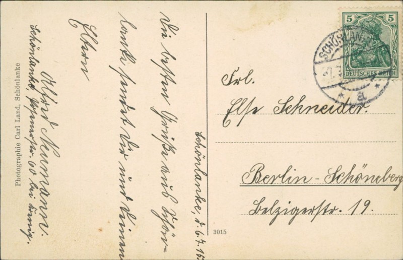 Alte Ansichtskarte aus Schönlanke / Trzcianka, gelaufen am 07.07.1915 von Schönlanke nach Berlin-Schöneberg.