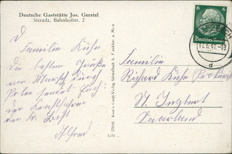 Alte Ansichtskarte aus Sieradz / Schieratz, gelaufen am 17.06.1941.