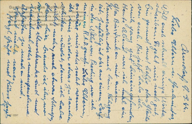 Alte Ansichtskarte aus Arnsdorf, beschrieben am 09.03.1944.