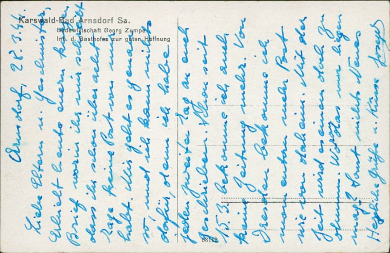 Alte Ansichtskarte aus Arnsdorf, beschrieben am 28.03.1944.