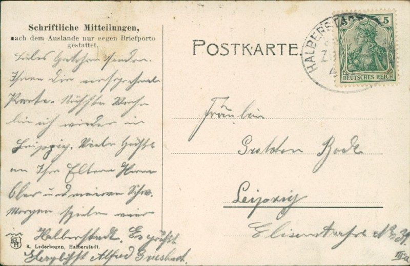 Alte Ansichtskarte aus Blankenburg (Harz)-Hüttenrode, gelaufen um 1906.
