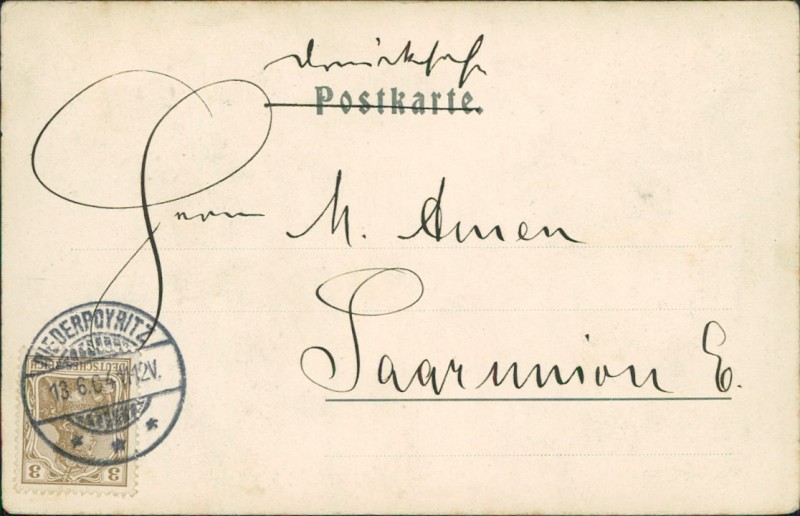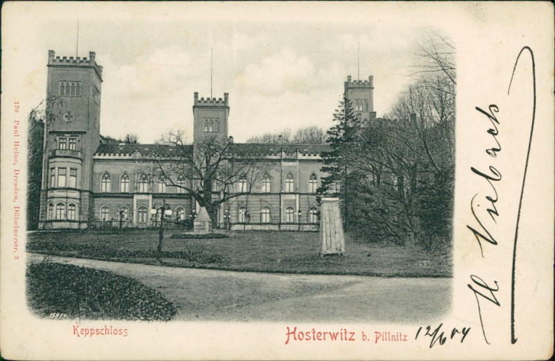 Alte Ansichtskarte aus Dresden-Hosterwitz, gelaufen am 13.06.1904 von Niederpoyritz nach Saarunion.