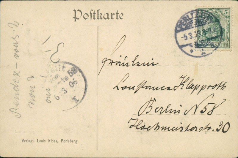 Alte Ansichtskarte aus Perleberg, gelaufen am 05.03.1906 von Perleberg nach Berlin.