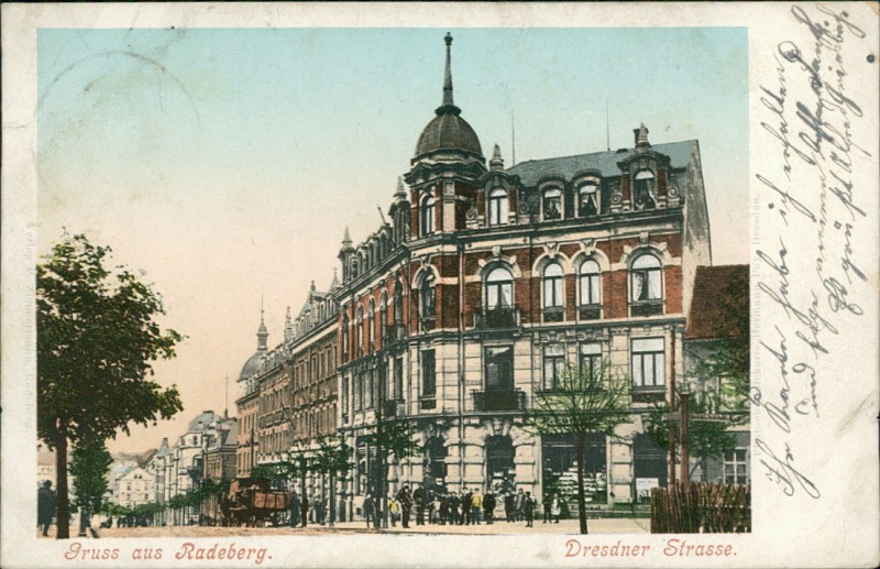 Alte Ansichtskarte aus Radeberg, gelaufen am 10.02.1901 von Radeberg nach Leipzig. Ankunft in Leipzig am 10.02.1901.