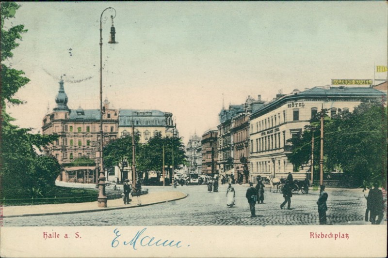 Alte Ansichtskarte aus Halle (Saale), gelaufen am 31.10.1903 von Halle (Saale) nach Paris.