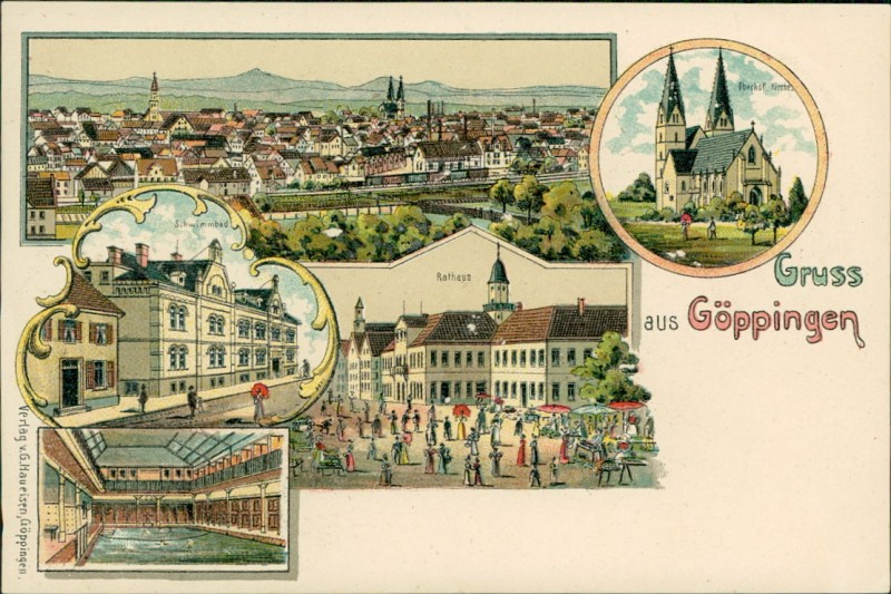 Alte Ansichtskarte aus Göppingen, ungebraucht, gedruckt um 1900.