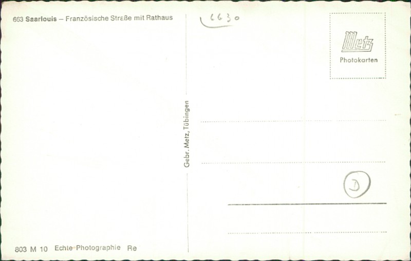 Alte Ansichtskarte aus Saarlouis, ungebraucht, gedruckt um 1960.