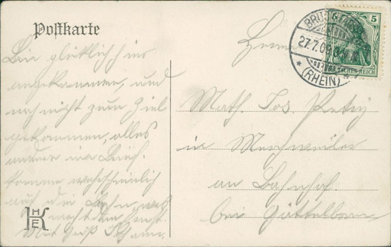 Alte Ansichtskarte aus Duisburg-Bruckhausen, gelaufen am 27.07.1909.