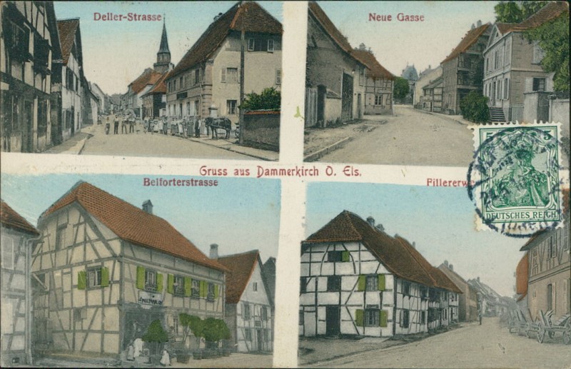 Alte Ansichtskarte aus Dammerkirch / Dannemarie, gelaufen am 24.05.1910 von Altkirch nach Bourg.