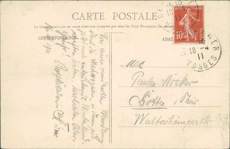 Alte Ansichtskarte aus Gérardmer, gelaufen um 1911.