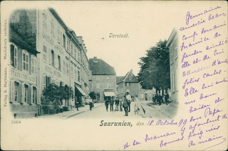 Alte Ansichtskarte aus Saarunion / Sarre-Union, gelaufen am 17.10.1899 von Saarunion nach Paris.