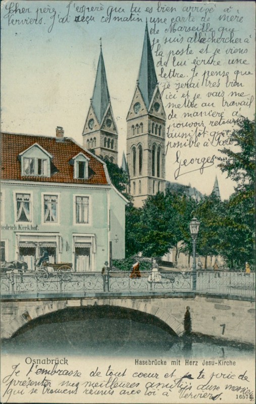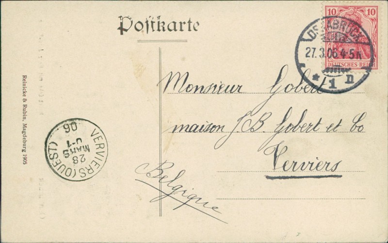 Alte Ansichtskarte aus Osnabrück, gelaufen am 27.03.1906 von Osnabrück nach Verviers.