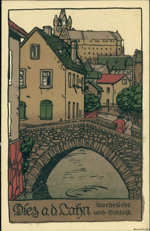 Alte Ansichtskarte aus Diez, ungebraucht, gedruckt um 1910.
