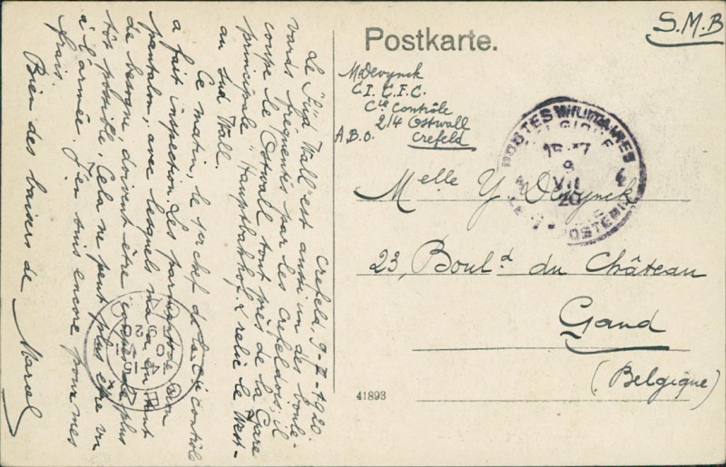 Alte Ansichtskarte aus Krefeld, gelaufen am 09.07.1920.