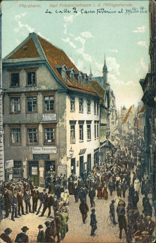 Alte Ansichtskarte aus Pforzheim, beschrieben um 1910.