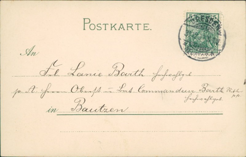 Alte Ansichtskarte, gelaufen am 31.12.1901 von Dresden nach Bautzen.