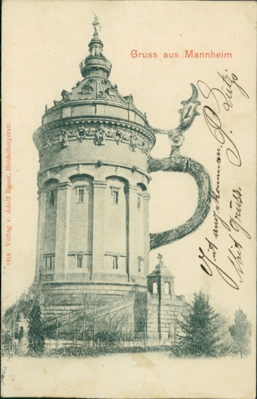 Alte Ansichtskarte aus Mannheim, gelaufen am 11.07.1903 von Mannheim nach Differdingen. Ankunft in Differdingen am 13.07.1903.