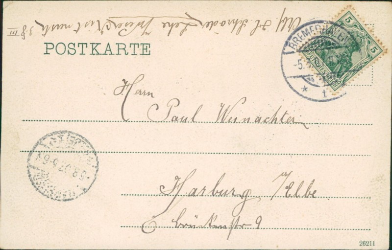 Alte Ansichtskarte aus Bremerhaven, gelaufen am 05.03.1907.