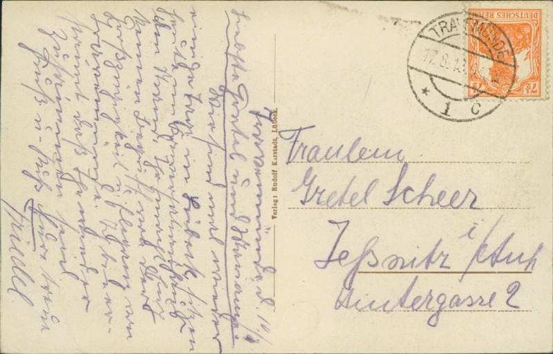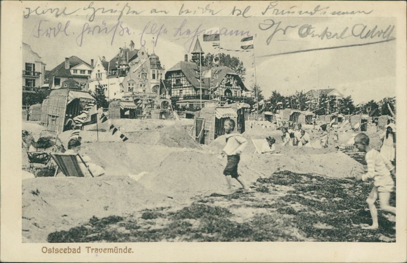 Alte Ansichtskarte aus Lübeck-Travemünde, gelaufen am 17.08.1913 von Travemünde nach Jeßnitz i/Anh.