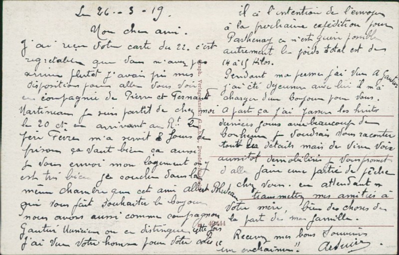 Alte Ansichtskarte aus Pension , beschrieben am 26.03.1919.