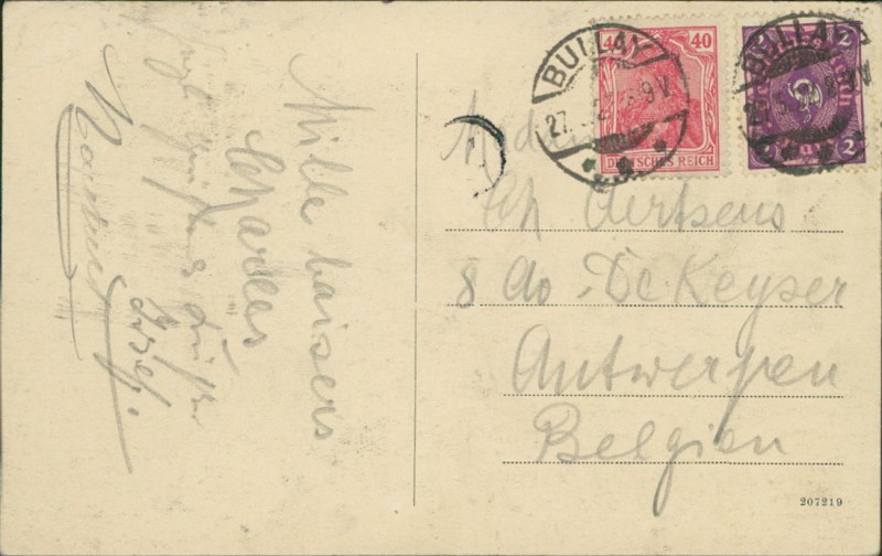 Alte Ansichtskarte aus Zell, gelaufen am 27.05.1922 von Bullay nach Antwerpen.