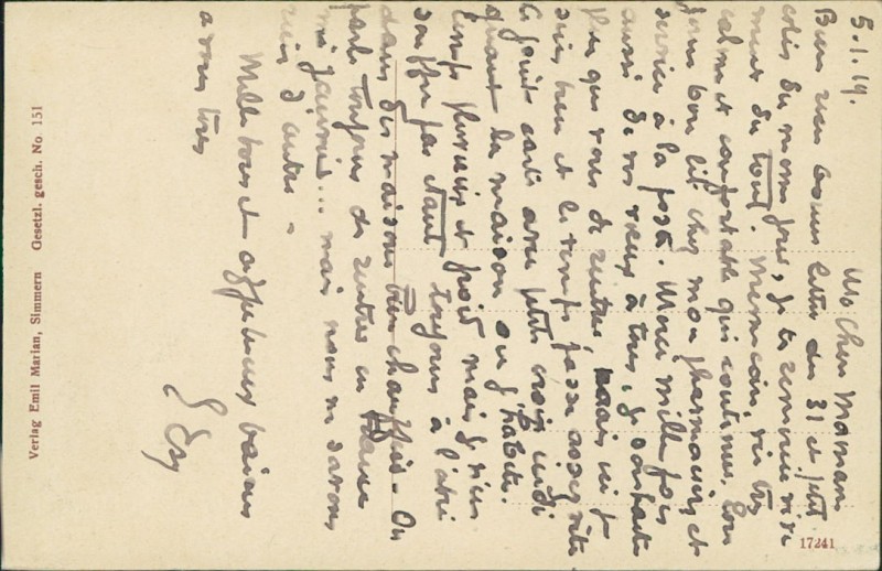 Alte Ansichtskarte aus Simmern, beschrieben am 05.01.1919.