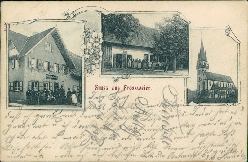 Alte Ansichtskarte aus Achern-Großweier, gelaufen am 09.07.1904 von Achern nach Straßburg (Els.). Ankunft in Straßburg (Els.) am 09.07.1904.