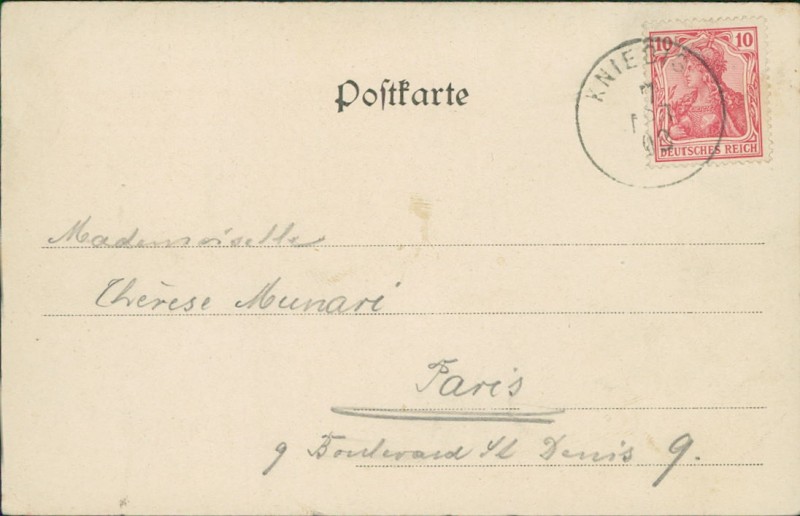Alte Ansichtskarte, gelaufen am 07.04.1903 von Kniebis nach Paris.
