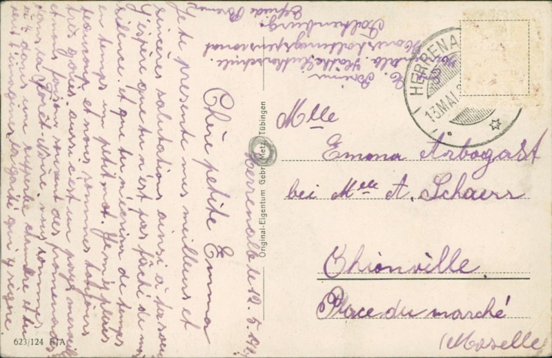 Alte Ansichtskarte aus Bad Herrenalb, gelaufen am 13.05.1924 von Herrenalb nach Thionville.