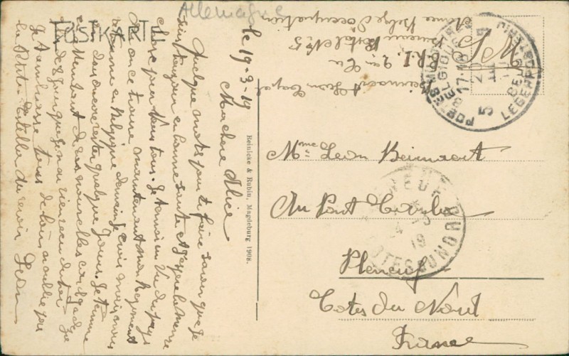 Alte Ansichtskarte aus Issum, gelaufen am 20.03.1919.