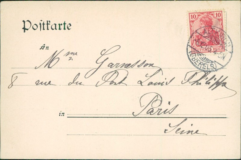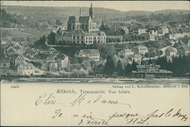 Alte Ansichtskarte aus Altkirch, gelaufen am 06.12.1905 von Altkirch (Oberels.) nach Paris.